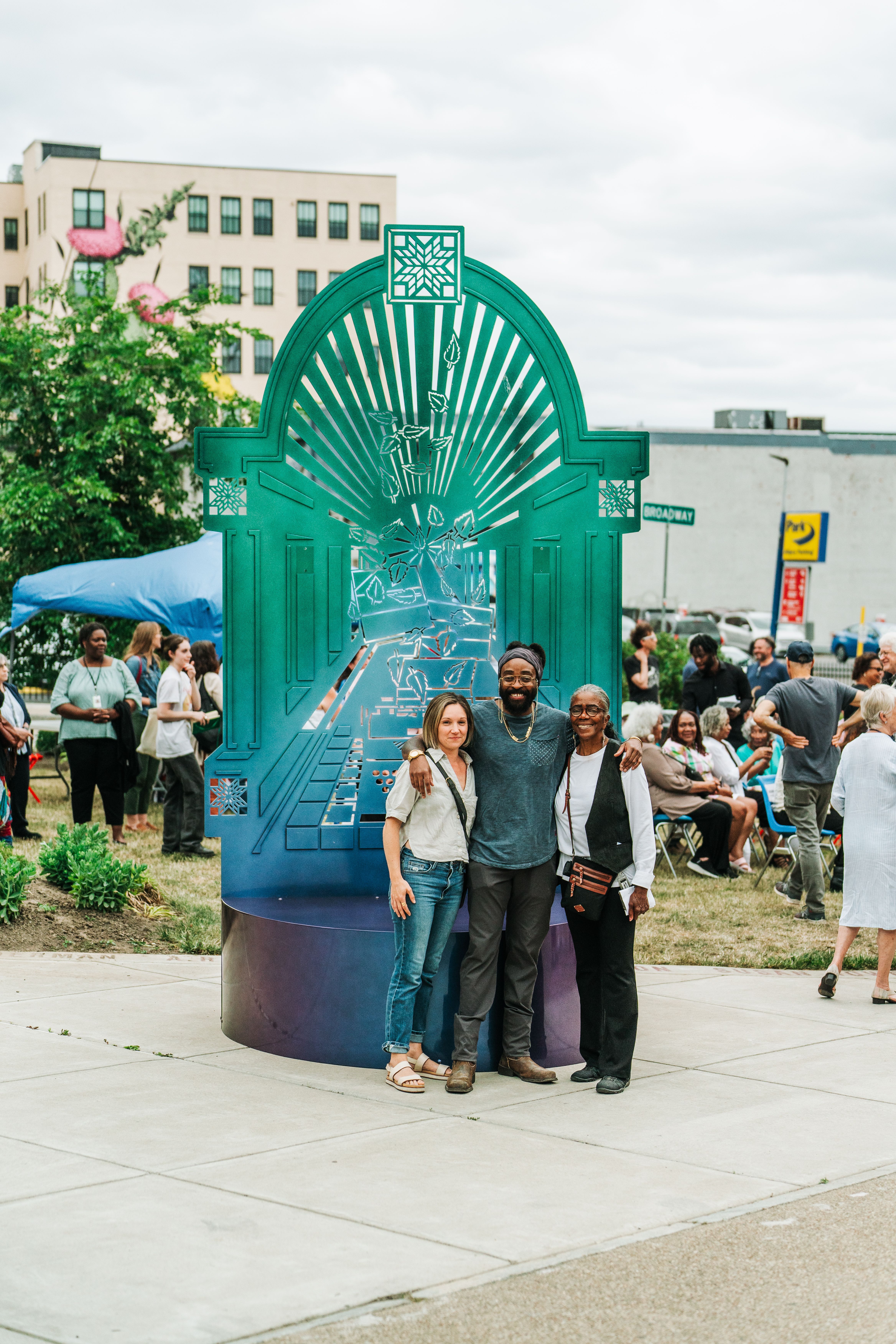 Each facet of the sculpture has been carefully considered to echo the poetry of Lucille Clifton while also inviting Reading Park visitors to engage with the work. Finished in a Light Interference Coating, this iridescent surface allows visitors to see themselves reflected in the piece. The typewriter opening into beams of light depicts the spirit of inspiration and connects most concretely to the downtown Central Library’s Reading Park itself—a place to celebrate the written word & to inspire people of all ages & walks-of-life.