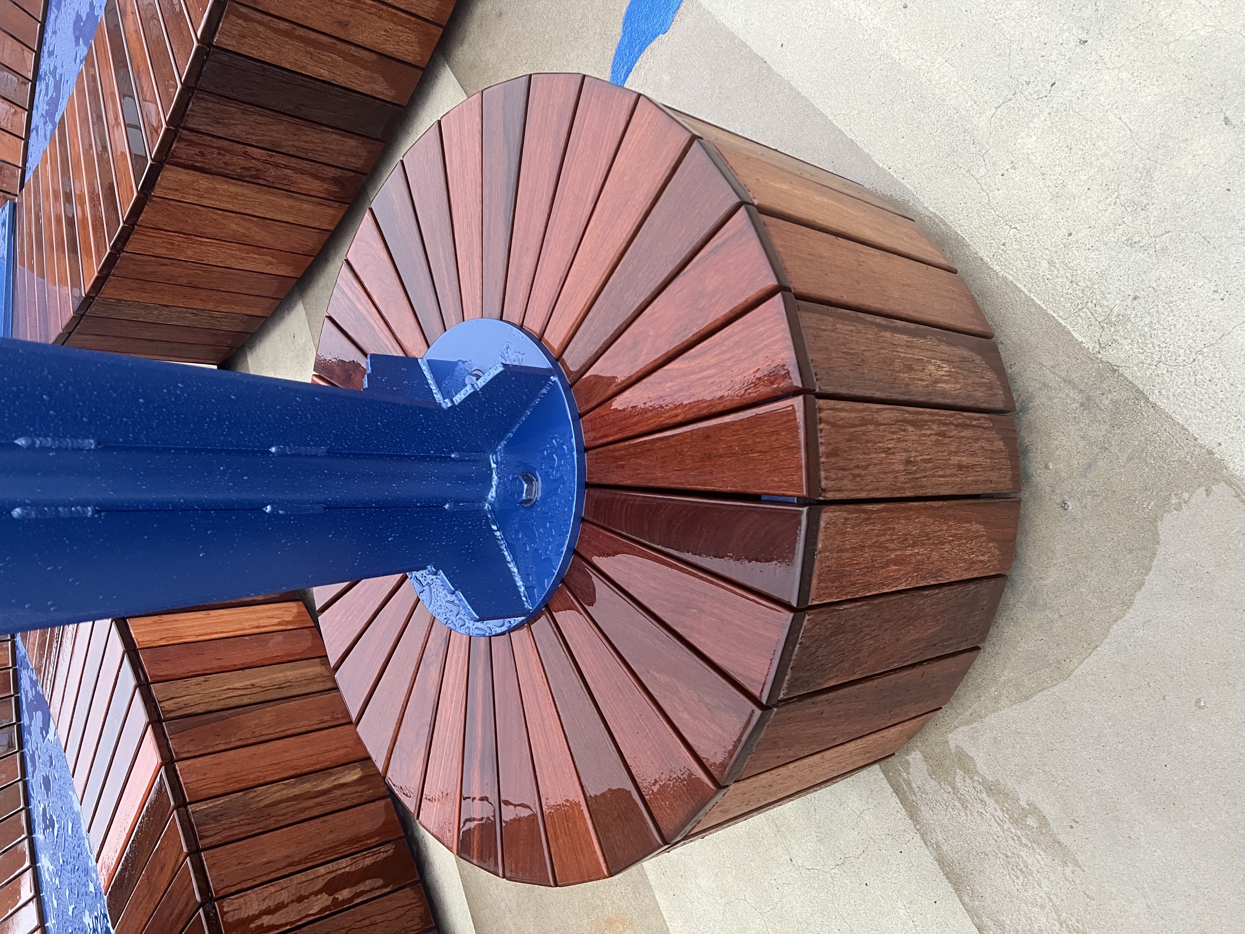 Welded Steel, ipe wood, etched and stained concrete